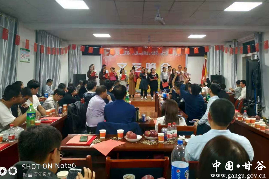 9月29日晚,大石镇在镇三楼会议室举办大石镇庆祝中华人民共和国成立70周年“椒之源”杯干部职工文艺晚会,对系列活动冠亚季军现场颁奖。晚会在《今天是你的生日》中拉开帷幕,《我爱你中国》、《我的中国心》、《学习雷锋好榜样》、《我的祖国》、《大漠敦煌》、《祝福祖国》、《明天会更好》,一首首抑扬顿挫的歌曲,一篇篇铿锵有力的诗文朗诵,讴歌爱党爱国情怀,传承红色精神,激励党员干部不忘初心、 牢记使命,用实际行动庆祝伟大祖国生日快乐。
