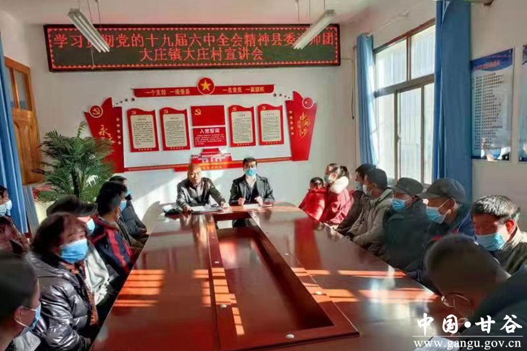 党的十九届六中全会于2021年11月8日至11日在北京召开。为了进一步传达全会内容,深入贯彻、学习领会全会精神,12月24日,县委讲师团到大庄镇大庄村开展宣讲活动,大庄村两委干部、部分党员、群众代表共计29人参加学习了党的十九届六中全会会议精神。