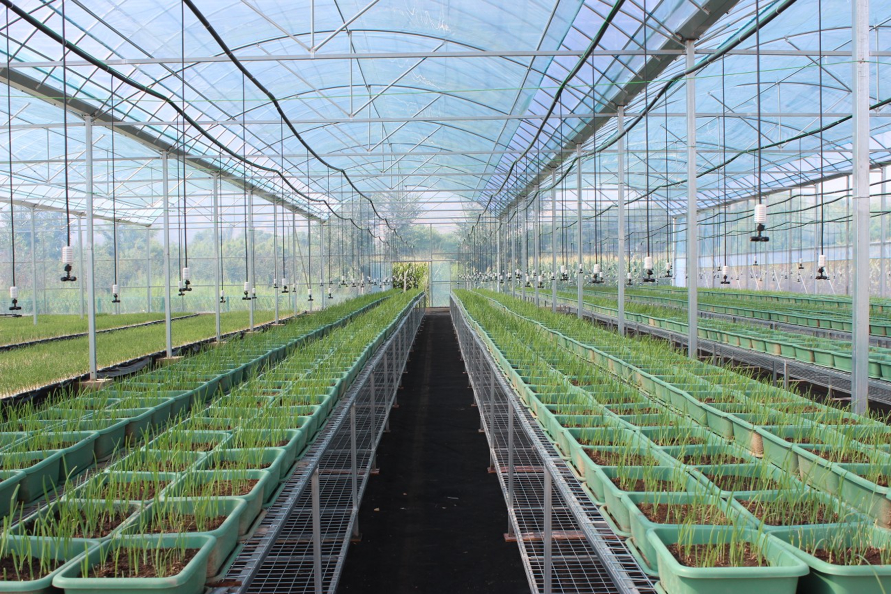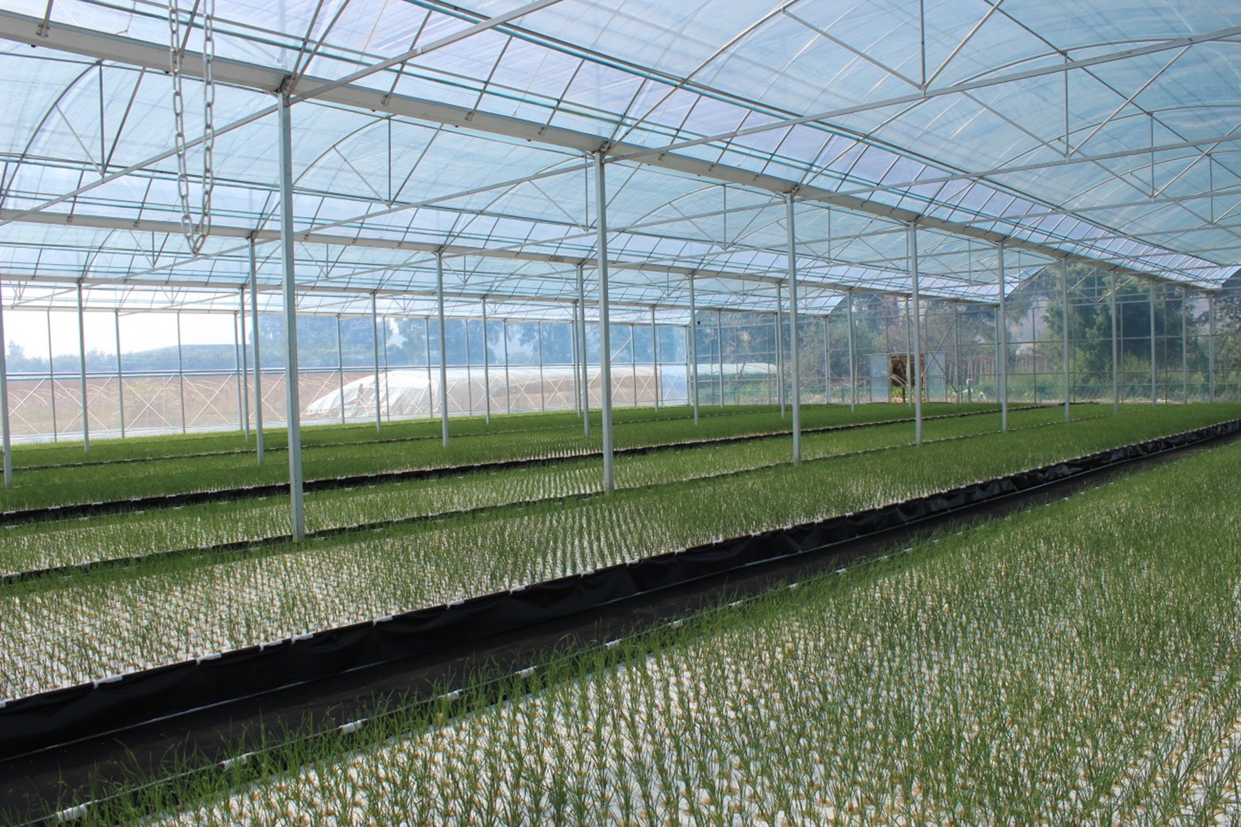 水培韭菜通过营养液的高效供给和根系无土障碍的吸收环境,杜绝了韭蛆、根腐病等土传病害,有效提升了产品安全性和土地、水资源利用率,亩均栽植15万株,是土培韭菜的3倍,节水率能达到70%-80%;生长周期显著缩短,一年可收割6-8茬,亩产3万斤左右,是传统土培韭菜的4-5倍。
