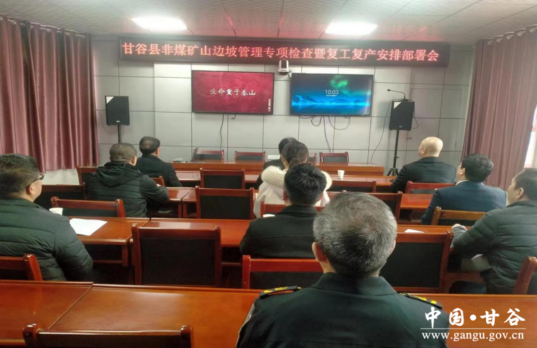 2023年2月27日甘谷县应急管理局召开甘谷县“非煤矿山企业边坡管理专项检查暨复工复产安排部署会议,各矿山企业主要负责人、安全管理员、应急局非煤矿山股全体人员参加会议。