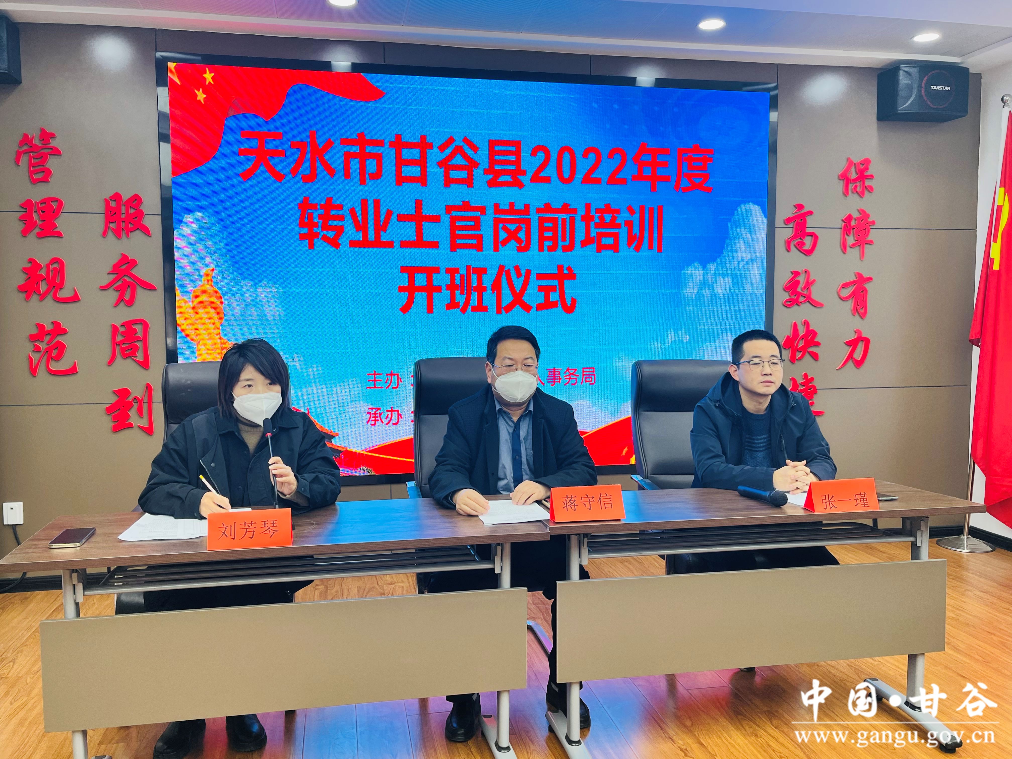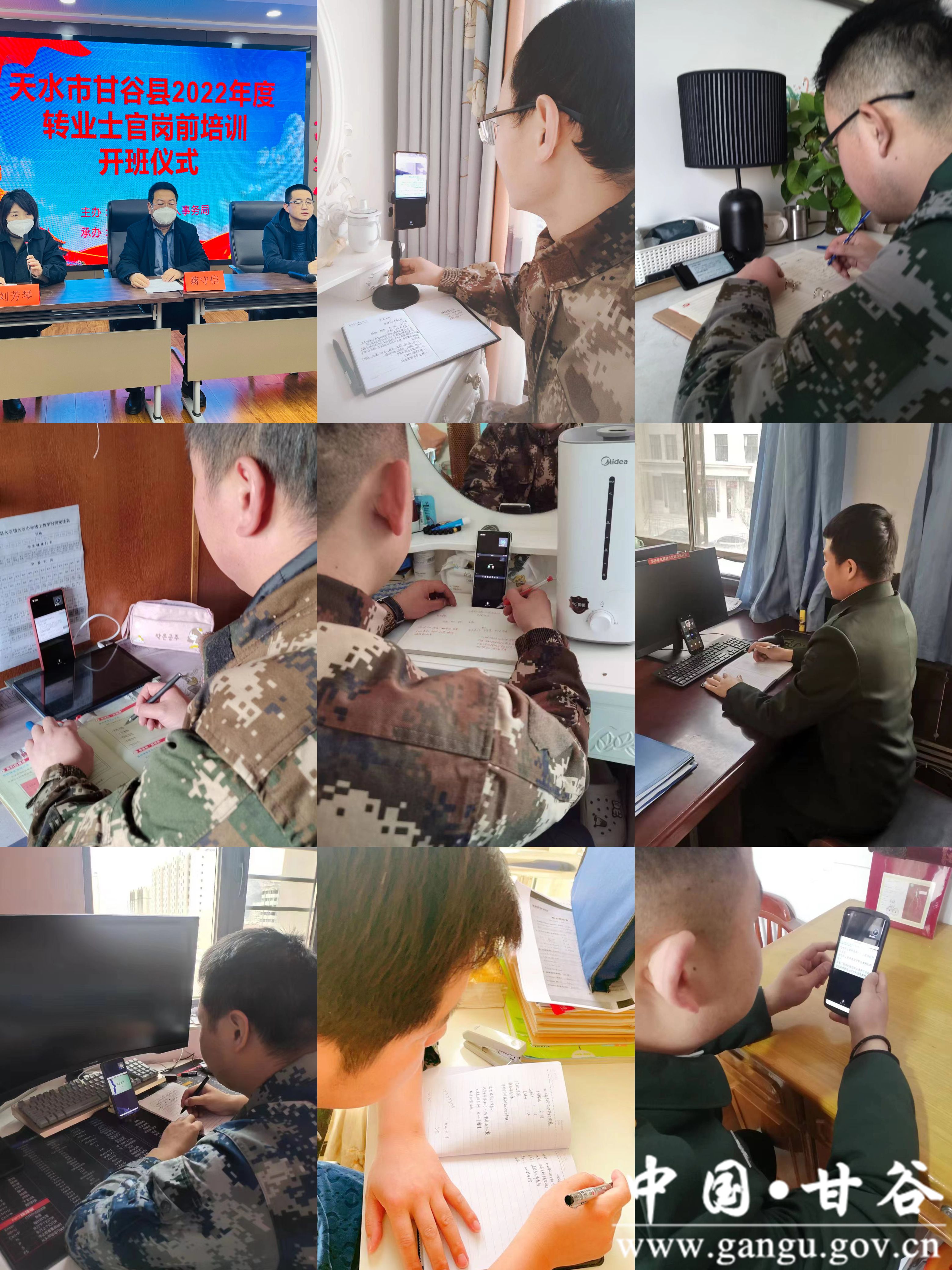 为帮助转业士官尽快转变角色,适应地方环境,尽早担负起新的职责使命,12月27日,甘谷县2022年转业士官岗前培训班举行线上开班仪式。本次培训班由县退役军人事务局主办,天水海林技工学校承办,采取线上直播的方式进行,培训对象为2022年以政府安排工作退出现役的19名转业士官。