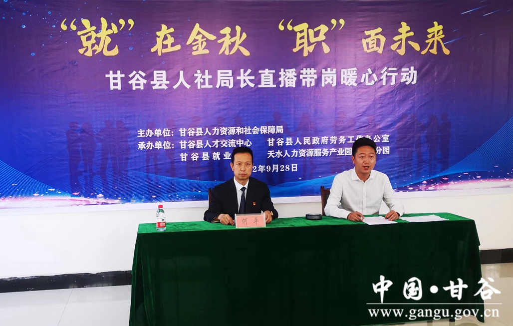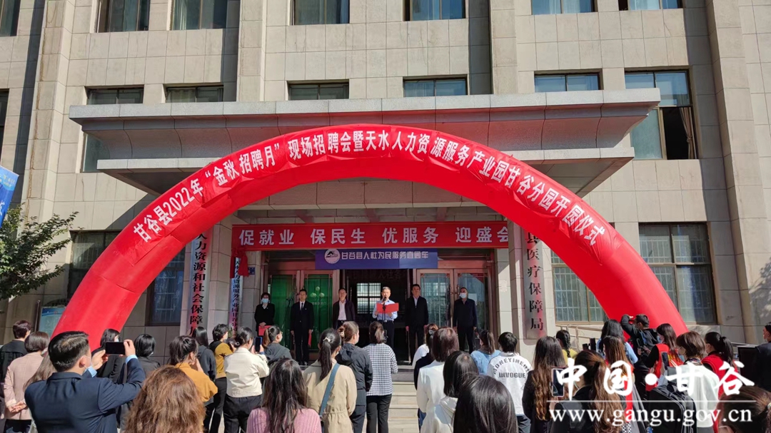 近日,甘谷县举办2022年“金秋招聘月”现场招聘会暨天水人力资源服务产业园甘谷分园揭牌仪式。市人社局党组成员、副局长刘宇和县人大常委会副主任薛希武出席仪式并为天水人力资源服务产业园甘谷分园揭牌。县政协副主席田小龙宣布甘谷县2022年“金秋招聘月”现场招聘会开始。