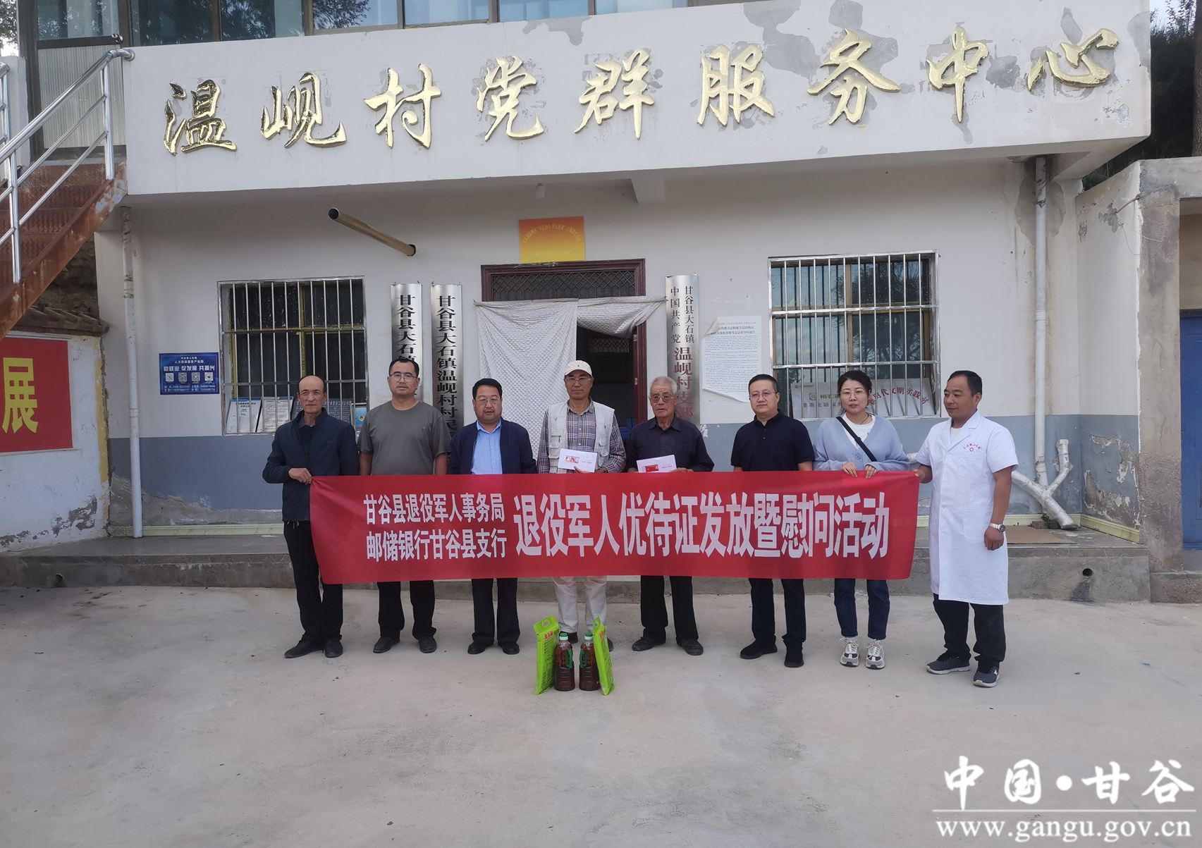 9月5日,甘谷县退役军人事务局联合邮储银行甘谷县支行来到大石镇温岘村,为2名退役军人发放优待证并进行走访慰问。