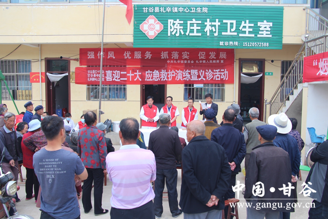 5月29日,甘谷县红十字会联合县中医院、礼辛镇中心卫生院新时代文明实践医疗服务队,走进该镇陈庄村开展以“喜迎二十大,应急救护演练”为主题的义诊宣传服务活动。