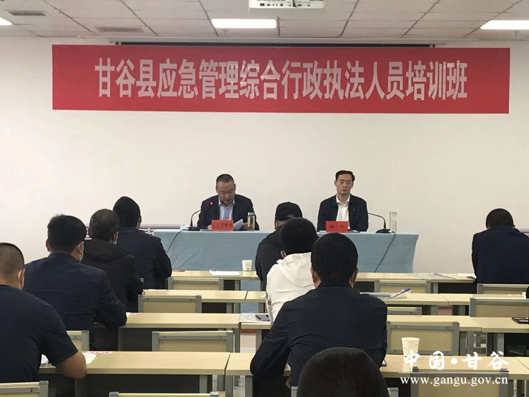 县委常委、政法委书记杜兴出席开班式并讲话,开班式上县应急管理局局长张克义传达学习了《中共甘谷县委办公室甘谷县人民政府办公室关于印发〈甘谷县应急管理综合行政执法改革实施方案〉的通知》。杜兴指出,扎实开展应急管理综合行政执法工作是有效整治安全生产、地质灾害、水旱灾害、森林草原火灾、防震减灾方面问题隐患,切实保障人民群众生命财产安全的重要举措。全县应急管理综合行政执法系统,必须牢固树立爱岗敬业的精神,坚定理想信念、树牢为人民服务的宗旨意识,常思责任之重、常想事故之害,始终保持一种昂扬向上、奋发有为的精神状态,通过无私奉献,提高工作效能。要知行相促、学以致用,不断提高自身业务素质和履行岗位职责的能力,不断提升应急管理综合行政执法能力。要大力发扬“钉钉子”精神,以脚踏实地的作风抓好应急管理综合行政执法,推动企业落实安全生产主体责任。要学好相关法律法规,规范执法行为,促进应急管理综合行政执法工作再上新台阶。