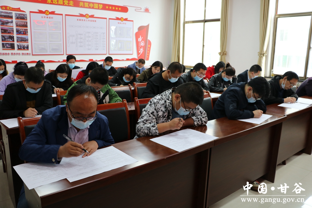 为进一步深入学习党的十九届六中全会精神和巩固医保业务知识,以党建为引领,坚持党建和业务相结合。4月24日,甘谷县医疗保障局组织开展岗位大练兵党建和医保业务知识考试,全面检验干部职工学习成效。