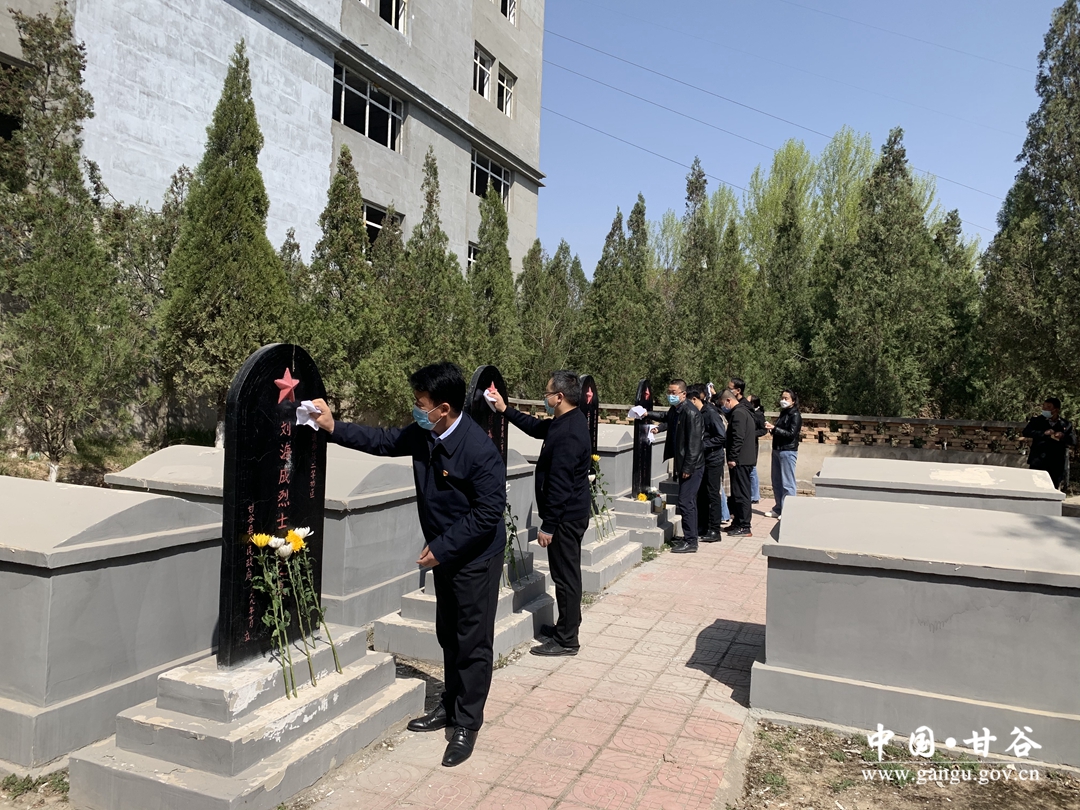 之后,全体干部依次来到烈士陵园,向长眠于此的革命烈士三鞠躬,并献上鲜花,细心擦去了墓碑上的浮尘,向烈士们表达了崇高的敬意。