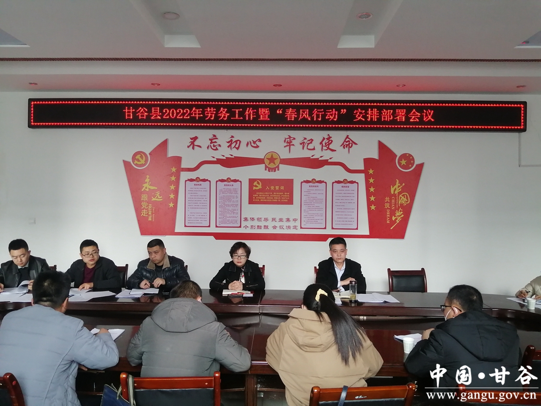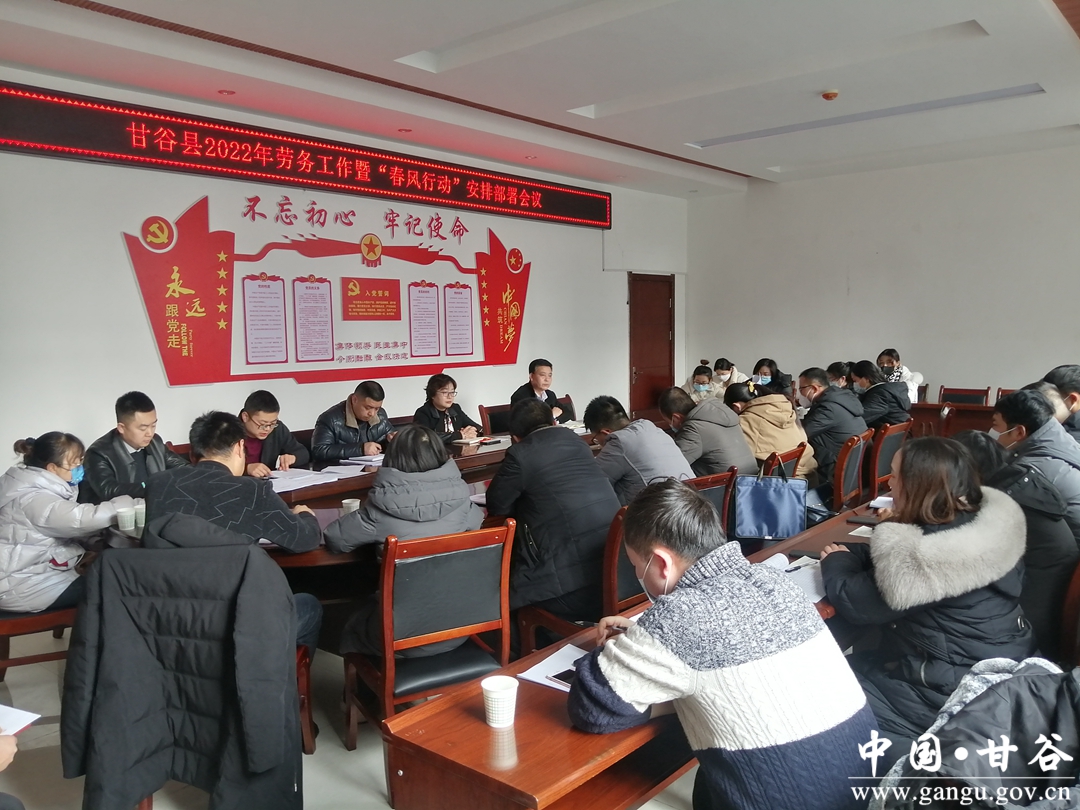 1月20日下午,甘谷县召开2022年劳务工作暨“春风行动”安排部署会议,县劳务办、各乡(镇)劳务专干、县内经营性人力资源服务机构共及30余人参加了会议。会议由县人社局党组成员、副局长李佩主持。