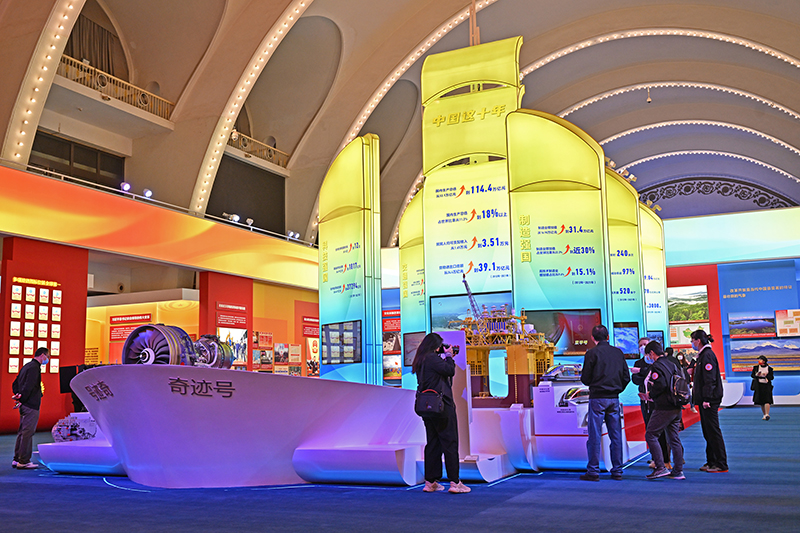 在党的二十大即将召开之际,“奋进新时代”主题成就展全景式、多角度展现了这十年我国经济建设的巨大变化与崭新面貌。