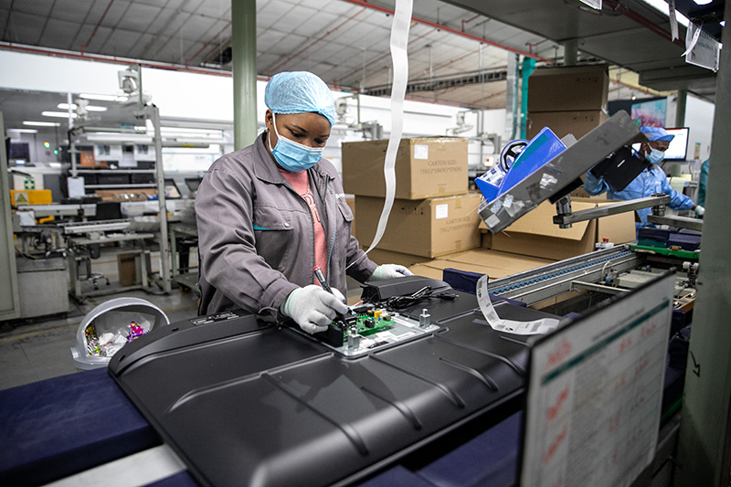 2022年6月1日,当地员工在南非开普敦海信南非工业园的电视机生产线上工作。新华社记者 吕天然 摄