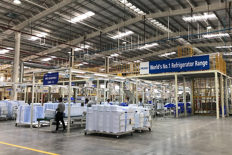 2017年11月16日,在印度浦那市,工人在中国海尔集团工业园厂房内工作。新华社记者 张兴军 摄