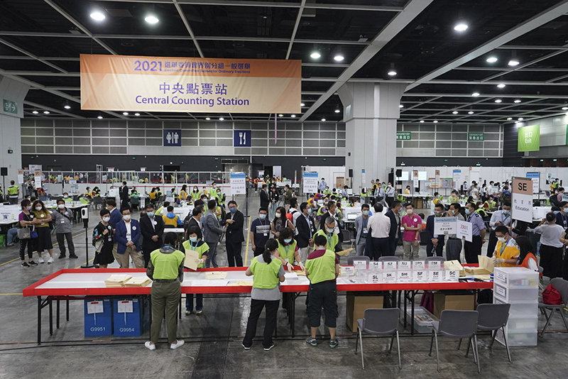 2021年香港特别行政区选举委员会界别分组一般选举举行。这是工作人员开始点票(2021年9月19日摄)。新华社记者 吕小炜 摄