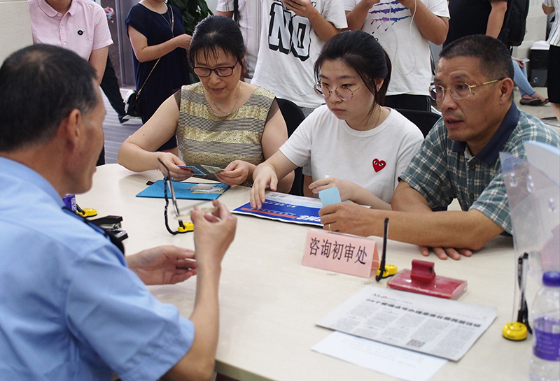 在上海市闵行区证照办理中心,民警在解答有关为香港居民办理居住证的手续问题(2018年9月1日摄)。新华社记者 任珑 摄