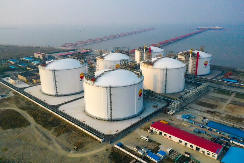 这是10月27日拍摄的位于南通洋口港阳光岛的LNG(液化天然气)储罐(无人机照片)。新华社记者 李博 摄