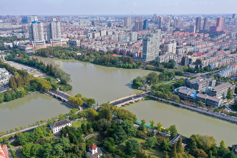 这是10月25日无人机拍摄的江苏省南通市市区。新华社记者 李博 摄