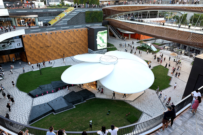 这是上海前滩太古里购物中心俯瞰(9月30日摄)。前滩太古里是总建筑面积约12万平方米的街区式购物中心,汇聚约250家中外优质零售商铺。新华社记者 陈飞 摄