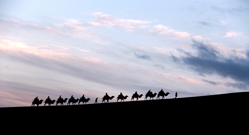 10月3日,游客在甘肃省敦煌市鸣沙山月牙泉景区游览。新华社发(张晓亮 摄)