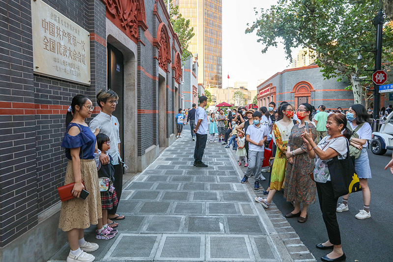 10月3日,人们在中共一大会址前拍照留影。新华社记者 王翔 摄