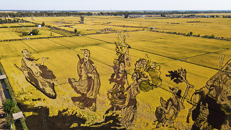 这是10月1日在沈阳市沈北新区“稻梦空间”景区拍摄的“八仙过海”稻田画(无人机照片)。新华社记者 杨青 摄