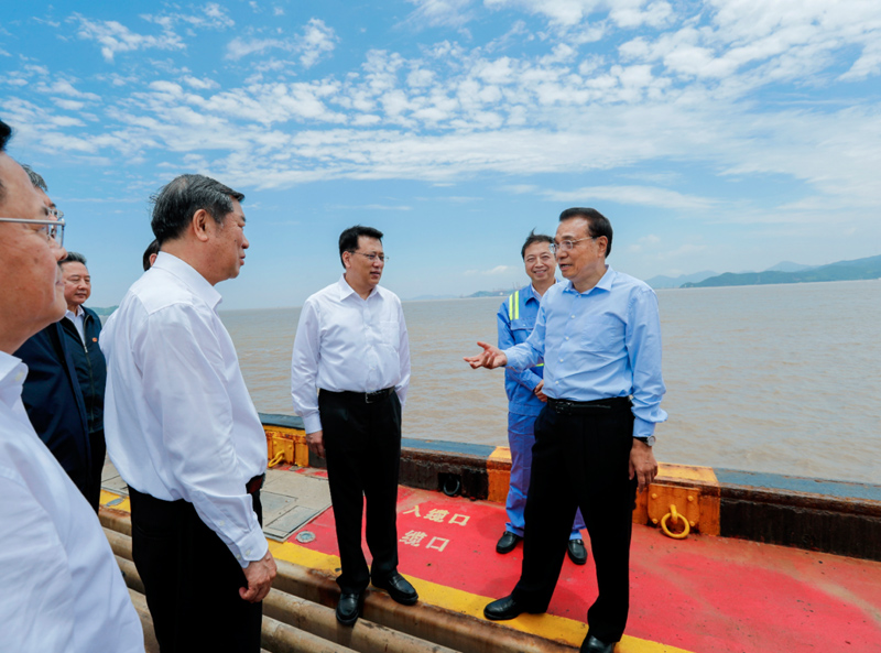 李克强在码头听取国际大宗商品价格走势汇报,远眺港口布局。他说,宁波舟山港是我国最早建成的现代化大港。中国要实现现代化,必须要扩大开放,充分利用国内国际两个市场、两种资源,与世界各国开展自由、公平贸易。