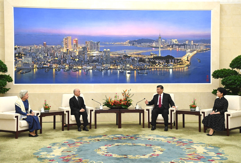 11月6日,国家主席习近平和夫人彭丽媛在北京人民大会堂会见柬埔寨国王西哈莫尼和太后莫尼列。新华社记者 饶爱民 摄