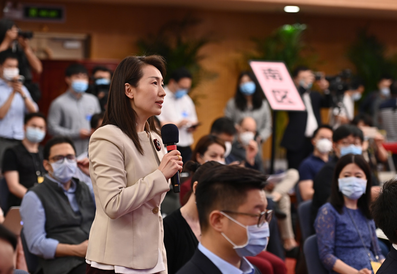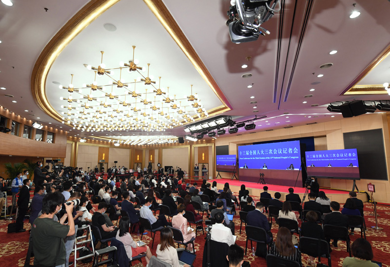 5月28日,国务院总理李克强在北京人民大会堂出席记者会并回答中外记者提问。这是记者在梅地亚中心多功能厅提问。