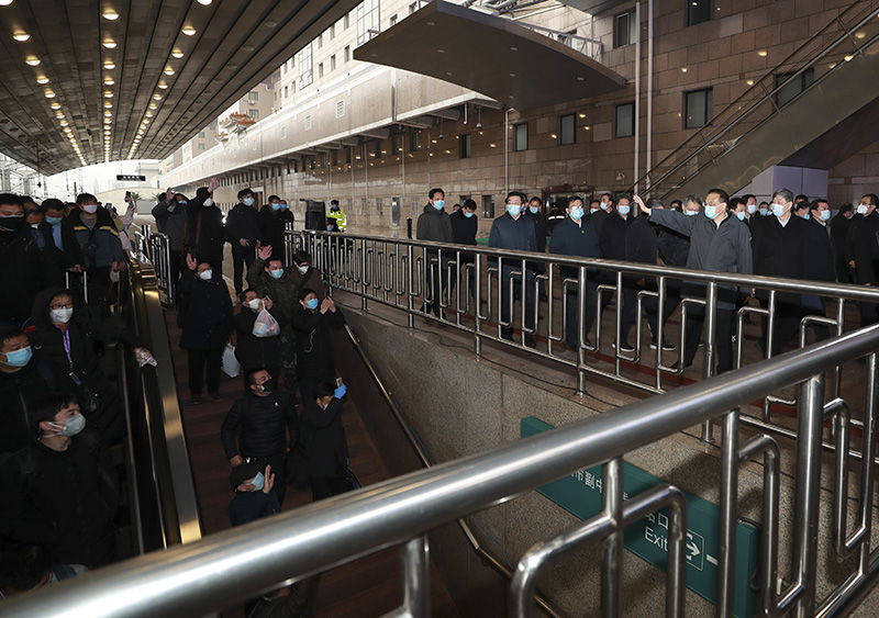 李克强2月14日赴北京西站考察有序错峰返程和新冠肺炎疫情防控工作。站台上,一趟刚刚抵达的列车正在下客,总理上前与返程旅客打招呼,询问车上的乘坐和防护情况。得知乘客不多,能确保座位间隔,李克强叮嘱大家要继续做好个人防护,有序返岗复工。在调度指挥中心,铁路部门负责人介绍,通过加强调度、有序组织,目前务工客流51%已完成出行,剩余部分随着各地复工时间不同,客流较为平缓;商务、差旅客流大部分已经分散,探亲客流假期结束后已基本返回。在场的交通、民航部门负责人表示公路、民航也呈现类似态势。李克强说,听到这些情况,我们心里就有数了。从各种数据看,目前可以判断:今年不会再出现往年那样的春运返程高峰。通过我们一系列有力有序科学防控举措,一方面有效遏制了湖北武汉等疫情重点地区传染源扩散,另一方面又切断疫情扩散的传播链,这样疫情大爆发就没有了基本条件。我们有信心打赢疫情防控的人民战争、总体战、阻击战,努力实现全年经济社会发展目标任务。