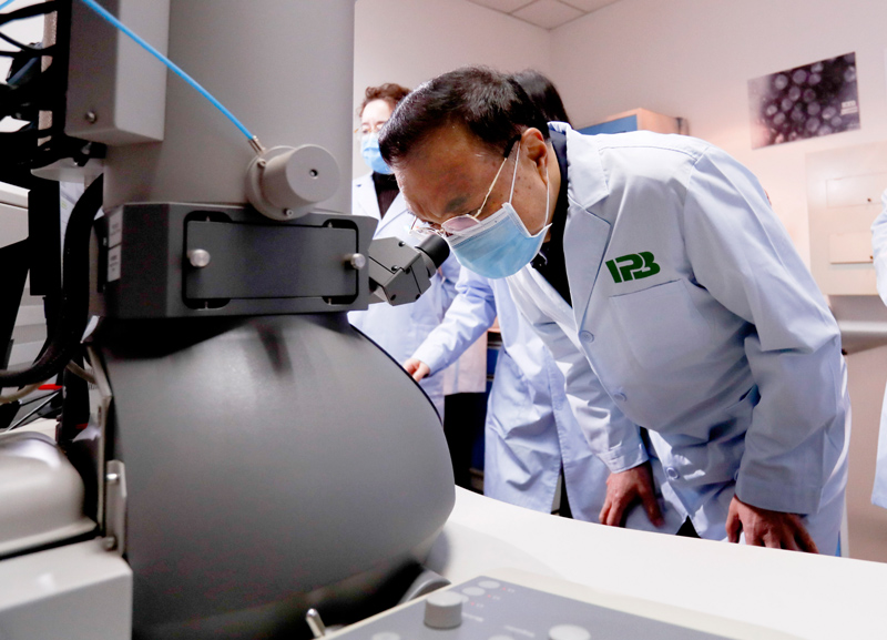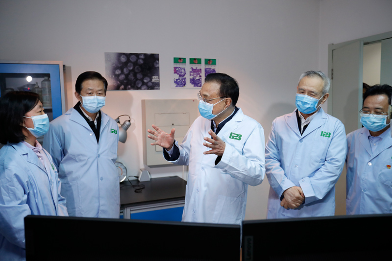 在病原系统生物学重点实验室,李克强详细了解抗病毒药物筛选等情况。得知目前已筛选出药物启动临床试验,并正在研制满足不同临床需求的药物,李克强说,有效药物是打赢这场阻击战的重要制胜武器,是提高患者治愈率、降低病死率的关键,抗疫一线的医护人员和患者对此十分期盼。医药等相关领域科研工作者要与时间赛跑,集中各方智慧,加强与临床合作,深入研究治愈病例的治疗方案,全力开展药品研发攻关。他叮嘱随行有关同志,要对有效药物以及疫苗研制加大财力物力人力等各方面支持和保障。李克强强调,药物和疫苗研制一定要尊重科学、遵循规律,把安全性有效性作为根本标准。有了有效药物,就能给患者带来福音,给群众送上“定心丸”。