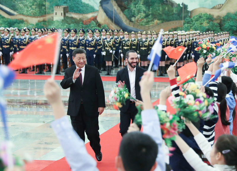 12月3日,国家主席习近平在北京人民大会堂同萨尔瓦多总统布克尔会谈。这是会谈前,习近平在人民大会堂北大厅为布克尔举行欢迎仪式。新华社记者 黄敬文 摄