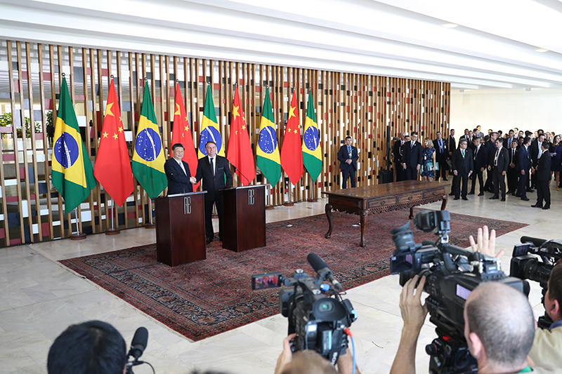 新华社巴西利亚11月13日电(记者 陈威华 赵焱 陆佳飞)当地时间11月13日,国家主席习近平在巴西利亚同巴西总统博索纳罗会谈。
