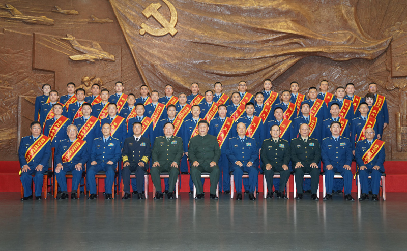 在热烈的掌声中,习近平亲切接见空军先进单位和英模代表,勉励他们珍惜荣誉、再接再厉,争取更大光荣。