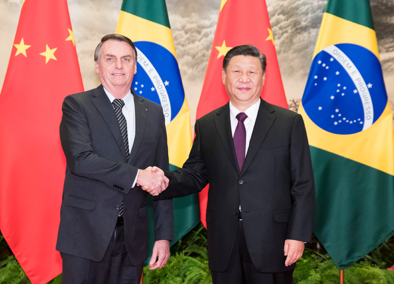 习近平欢迎博索纳罗首次访华,感谢他在中华人民共和国成立70周年之际发来热情洋溢的贺电。习近平指出,中国和巴西分别是东西半球最有代表性的新兴市场国家和最大的发展中国家。中巴建交45年来,双方始终相互尊重、平等相待、互利共赢,成为发展中大国团结合作、共同发展的典范。当今世界正经历百年未有之大变局,但和平、发展、合作、共赢的时代潮流没有变,中国、巴西等新兴市场国家整体崛起的势头没有变,中方从战略高度和长远角度发展中巴关系的政策没有变。当前,中国和巴西都处在国家发展的关键时期,我们要总结过去、展望未来,开辟中巴全面战略伙伴关系新愿景,为维护世界和地区的和平、稳定与繁荣贡献正能量。