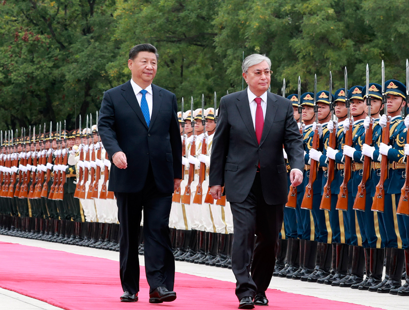 9月11日,国家主席习近平在北京人民大会堂同哈萨克斯坦总统托卡耶夫举行会谈。这是会谈前,习近平在人民大会堂东门外广场为托卡耶夫举行欢迎仪式。新华社记者 黄敬文 摄