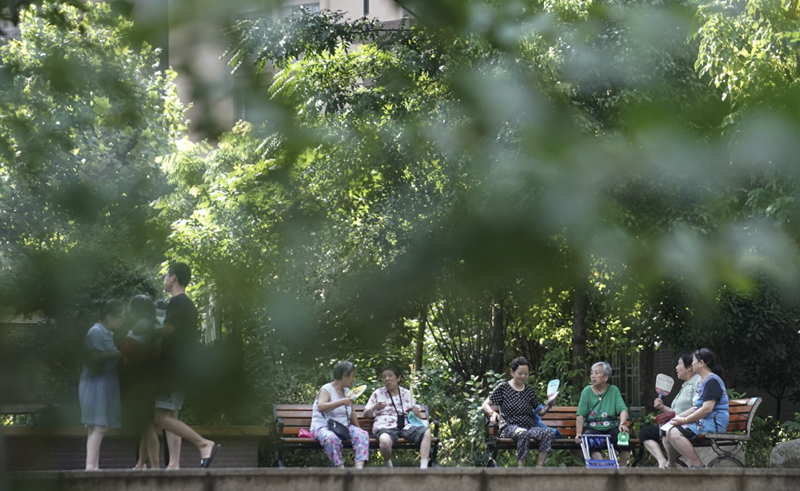 居民在湖北省武汉市青山区的一棚改安置小区休闲(7月30日摄)。新华社记者 程敏 摄