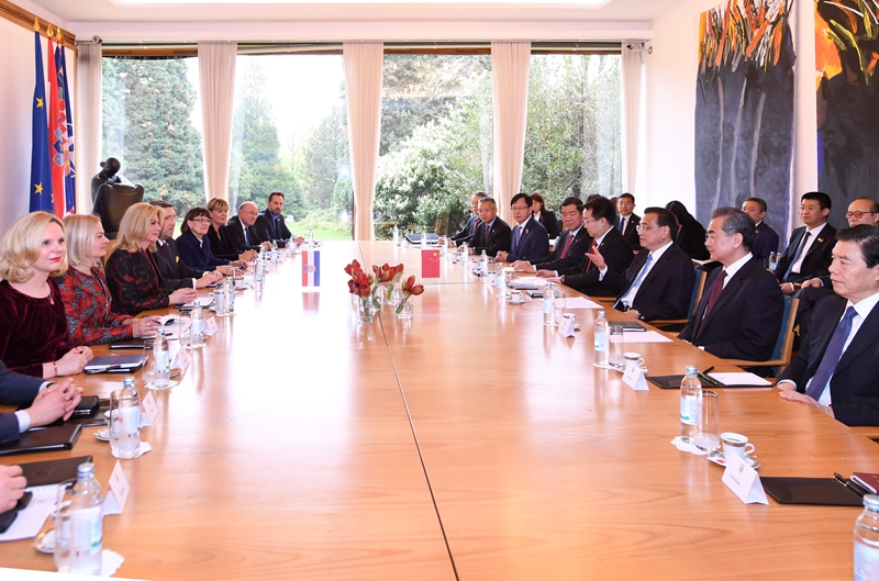 李克强首先转达习近平主席对基塔罗维奇总统的亲切问候。李克强表示,中克双方始终坚持相互尊重、平等相待、互利共赢,两国关系保持健康稳定发展。总统女士高度重视中克关系发展,我们表示赞赏。中克合作是平等、开放、包容的,发展潜力巨大。中方愿将“一带一路”倡议同克方“三海合作”倡议加强对接,不断深化两国各领域务实合作。