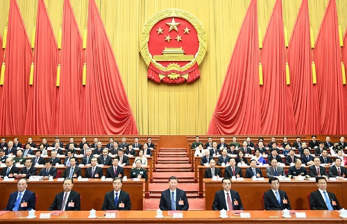 习近平、李克强、汪洋、王沪宁、赵乐际、韩正、王岐山和大会主席团成员在主席台就座。