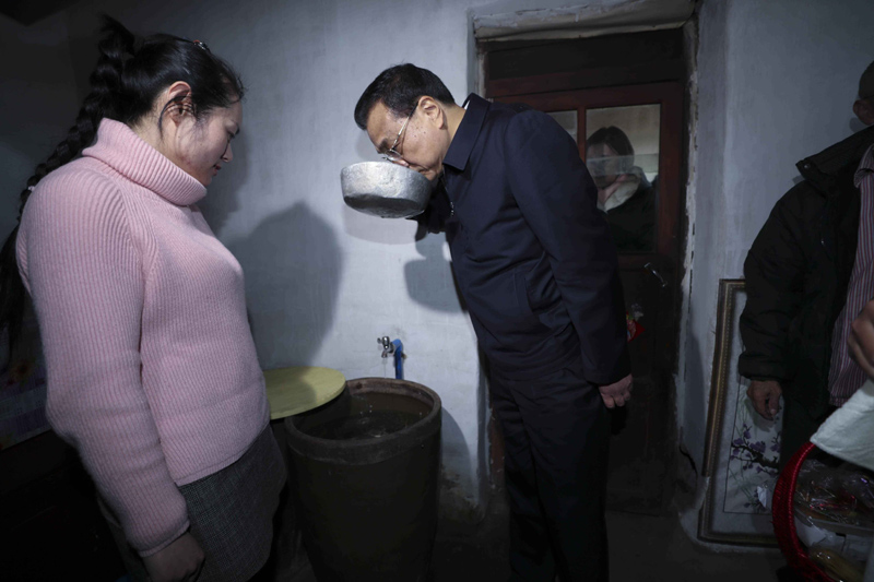 【离除夕还有3天,李克强来到内蒙古这个深度贫困旗看望慰问贫困户】2月1日,离除夕还有3天,李克强总理来到内蒙古考察慰问,一下飞机直奔乌兰察布市察哈尔右翼前旗。这个旗是国家级贫困旗县,也是自治区深度贫困旗县。一路颠簸来到这个旗三岔口乡十二洲村,总理走进贫困户张连奎家,与村民们盘腿坐在热炕上拉起家常。他详细询问村民们种养殖和外出务工收入、子女教育、老人赡养、就近医疗等情况。总理说,快到春节了,我专程来看望大家,就是想听听大家的心里话:怎么样让贫困户的腰包快一点鼓起来,怎么样让贫困户的日子快一点好起来。临走时,李克强特意来到厨房,查看备年货情况,并从水缸里舀出水尝了尝。听说总理来了,村民们纷纷赶到张连奎家的院子里。李克强与村民们合影留念,并给大家送上新春祝福。