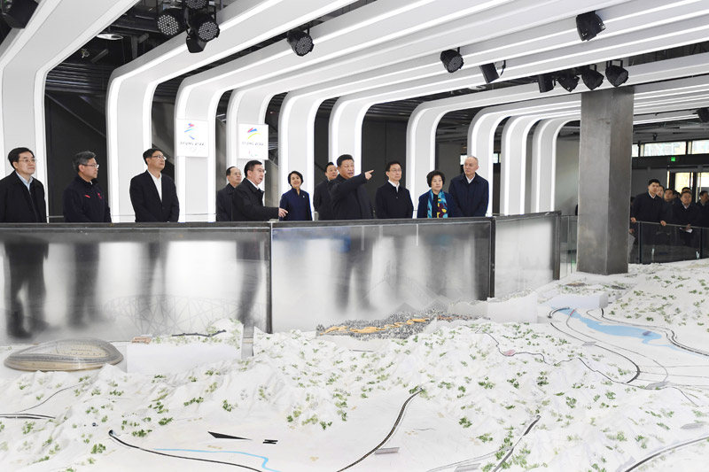 下午3时30分,习近平乘车来到石景山首钢园区。首钢石景山钢铁主流程停产后,北京冬奥会组织委员会落户于此。习近平走进北京冬奥会展示中心展厅,了解北京冬奥会、冬残奥会筹办工作、场馆和基础设施规划建设等情况。习近平不时察看、询问,了解到筹办工作有序推进,他表示,办好北京冬奥会、冬残奥会,是党和国家的一件大事。要全面落实绿色、共享、开放、廉洁的办奥理念,充分考虑场馆的可持续利用问题,高标准、高质量完成各项筹办任务。