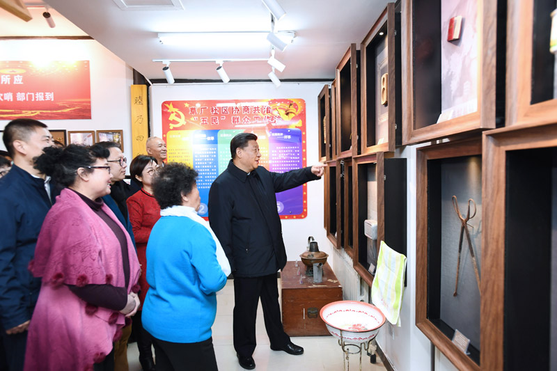 2月1日,中共中央总书记、国家主席、中央军委主席习近平在北京看望慰问基层干部群众,考察北京冬奥会、冬残奥会筹办工作。这是1日上午,习近平在前门东区草厂四条胡同物业服务站,看望慰问街道、社区工作人员和物业员工。新华社记者 谢环驰 摄