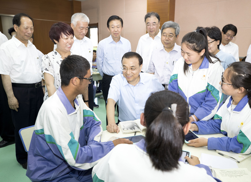 李克强来到闽宁中学,了解开展“互联网+教育”情况。“智慧教室”里学生们人手一个平板电脑,向总理展示上面集成的教育课件和彼此分享的学习心得。李克强说,教育是获取知识、促进起点公平的关键,“互联网+教育”可以让贫困地区孩子也能听到好老师的讲课,开拓他们的眼界,点燃改变人生的火把。目前农村信息基础设施落后,要加大政府投入,解决网速慢、资金不足等卡脖子问题。他还关切询问教师收入,叮嘱地方同志要做到义务教育教师平均工资不低于当地公务员平均工资水平。