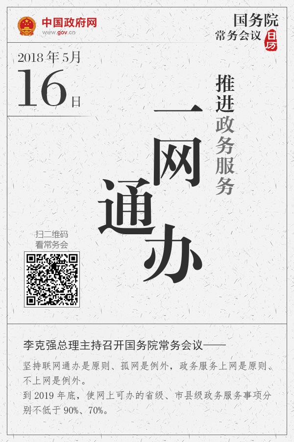 “要坚持联网通办是原则、孤网是例外,政务服务上网是原则、不上网是例外!”李克强总理在5月16日的国务院常务会议上强调。