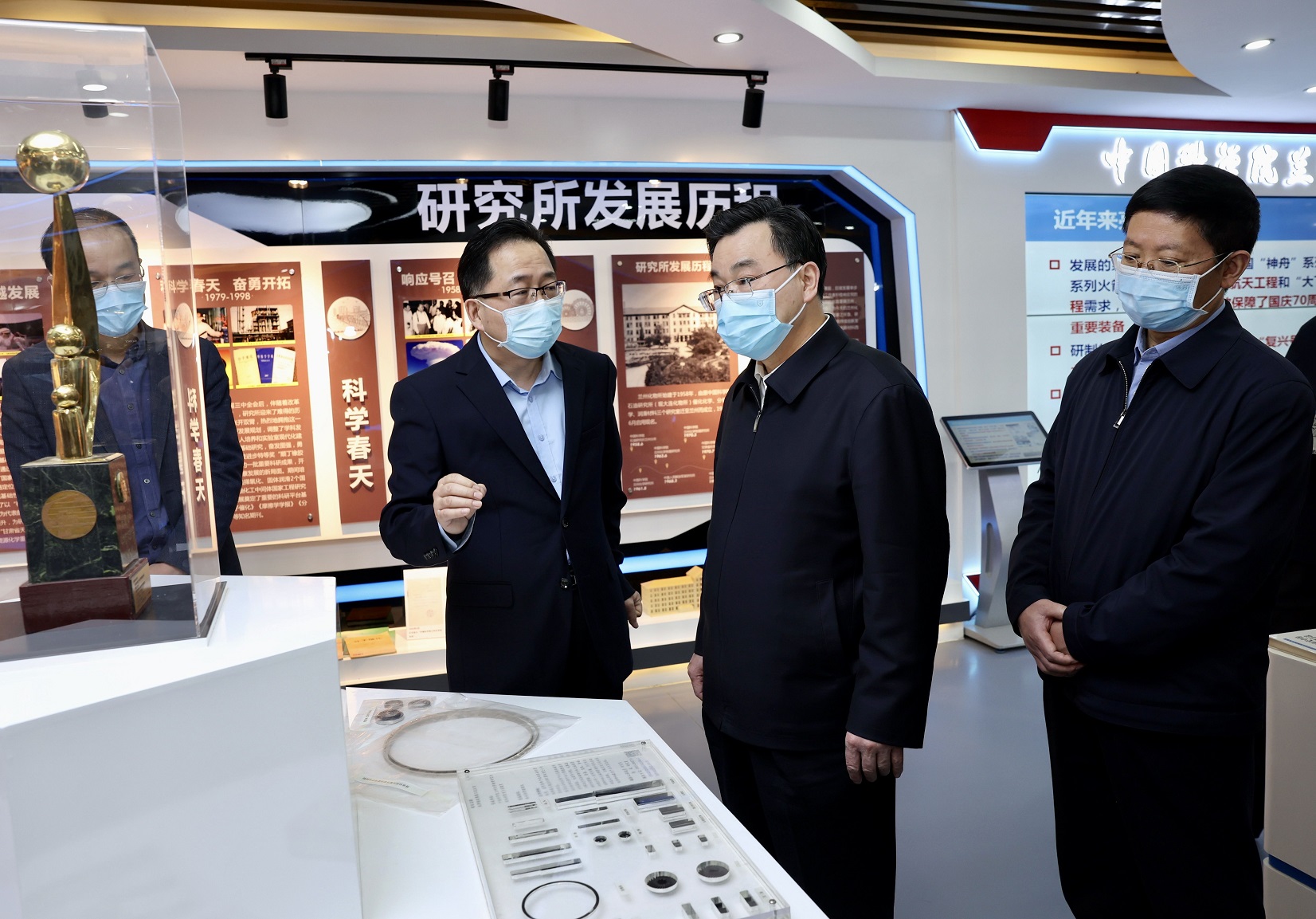 胡昌升先后来到中科院近代物理研究所、中科院兰州化学物理研究所、中科院西北生态环境资源研究院,实地考察直线加速器中心、兰州重离子加速器国家实验室、固体润滑国家重点实验室、冻土工程国家重点实验室,听取中科院西北特色植物资源化学重点实验室、甘肃省天然药物重点实验室建设情况介绍,详细了解中科院在甘科研院所历史沿革、科技创新、成果转化、人才引育等情况,并看望慰问一线科研人员。他说,一直以来,中科院在甘科研院所扎根甘肃、服务甘肃,对地方经济社会发展作出了重要贡献。希望中科院在甘科研院所依托人才、资源等优势,引导和驱动更多优质创新要素聚集甘肃,围绕落实国家战略、优质资源开发利用、优势产业发展壮大、生态资源保护利用等重点方向和领域,加大研究攻关力度,促进科技成果转化和应用,推动科技与产业深度对接、全面融合,为甘肃经济增长、结构调整提供更强支撑、贡献更大力量。