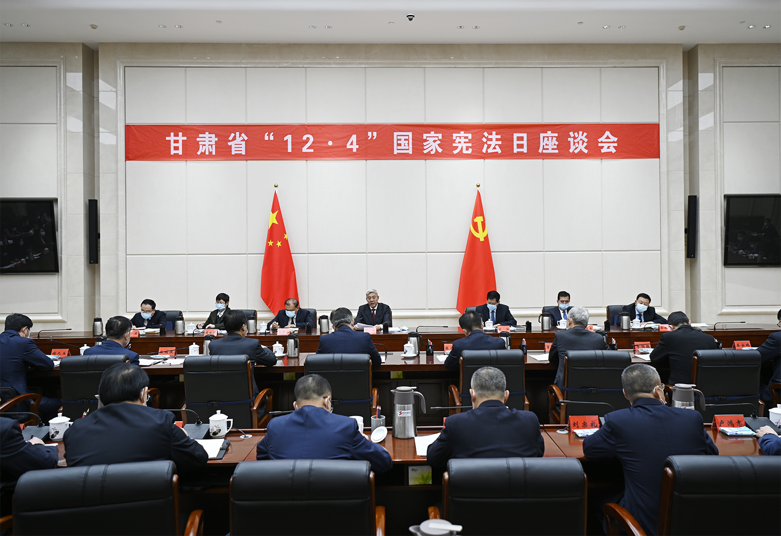甘肃省“12·4”国家宪法日座谈会12月4日在兰州举行,省委书记、省人大常委会主任尹弘主持并讲话。他强调,要坚持以习近平法治思想为指引,深入贯彻落实习近平总书记关于宪法的重要论述,弘扬宪法精神,维护宪法权威,推动宪法实施,坚定不移走中国特色社会主义法治道路,为甘肃全面建设社会主义现代化事业提供有力法治保障。