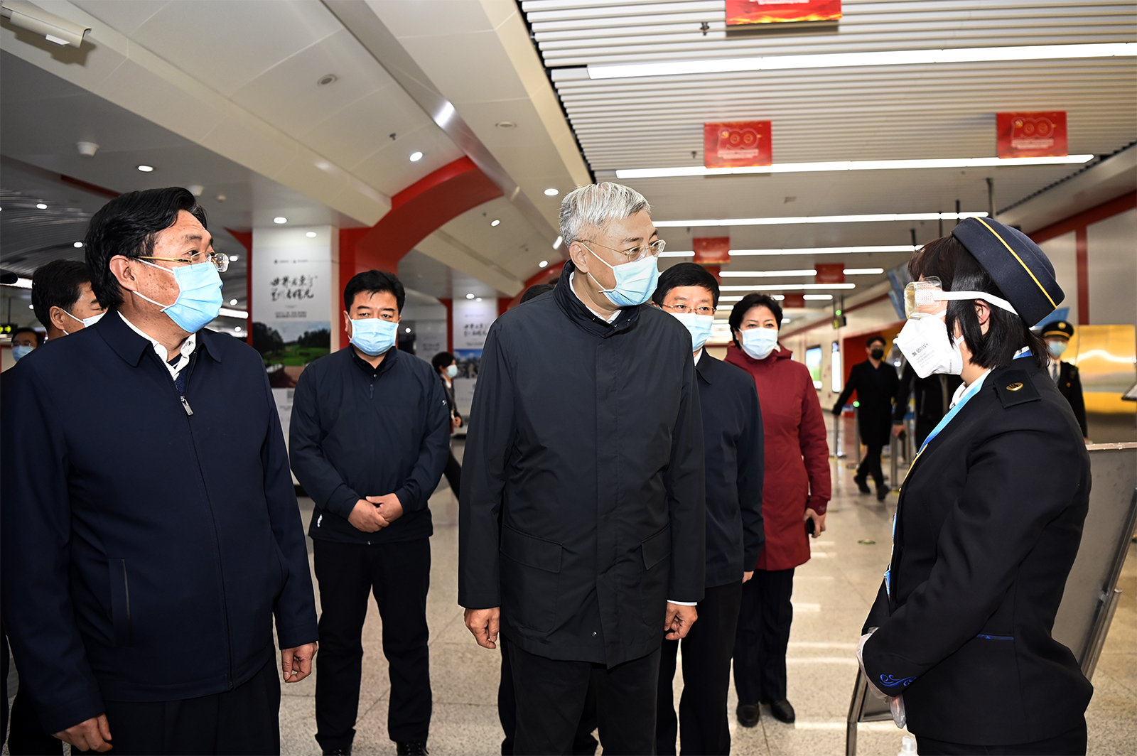 尹弘先后来到地铁1号线东方红广场站和陆都花园小区,实地了解扫码测温、人员登记、场所消杀等防控措施落实情况。他指出,要严格“两站一场”和公共交通工具的扫码测温等措施,严把外防输入关口。坚持社区网格化管理,充分调动基层党员干部、网格员、志愿者等力量,加强24小时值班值守,筑牢联防联控、群防群控的坚固防线。在兰州市卫健委,尹弘通过疫情防控指挥调度中心疫情监控信息化系统,视频连线市疾控中心、市肺科医院等,了解核酸检测、流调溯源、患者救治等工作,强调要优化防疫力量配备,做好物资储备,强化工作指导,全力以赴救治患者,同时强化医护人员自我保护意识,坚决防范院感发生。