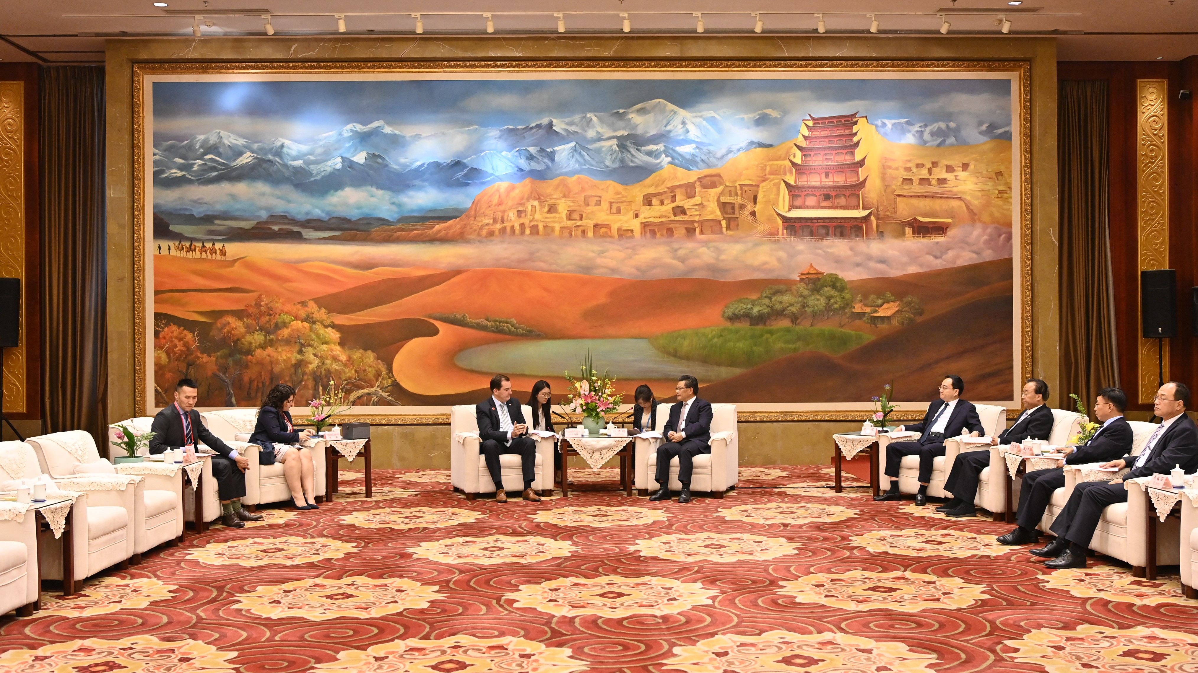 任振鹤说,甘肃自古就是丝绸之路的咽喉要道,随着“一带一路”建设不断走深走实,甘肃的通道、节点作用更加突出。在中国共产党成立100周年之际,甘肃与全国一道走上了全面小康、共同富裕的康庄大道,当前,甘肃正在深入贯彻落实习近平主席的重要指示精神,牢牢抓住“一带一路”这个最大机遇,不断加强与沿线国家和地区的交流合作,加快构建对外开放新格局。甘肃与乌拉圭在农业、旅游业等方面有着广阔的合作前景,希望双方以本届兰洽会为契机,积极深入交流,发挥各自优势,开展更多务实合作,共同推动两国元首电话会晤成果落地落实。