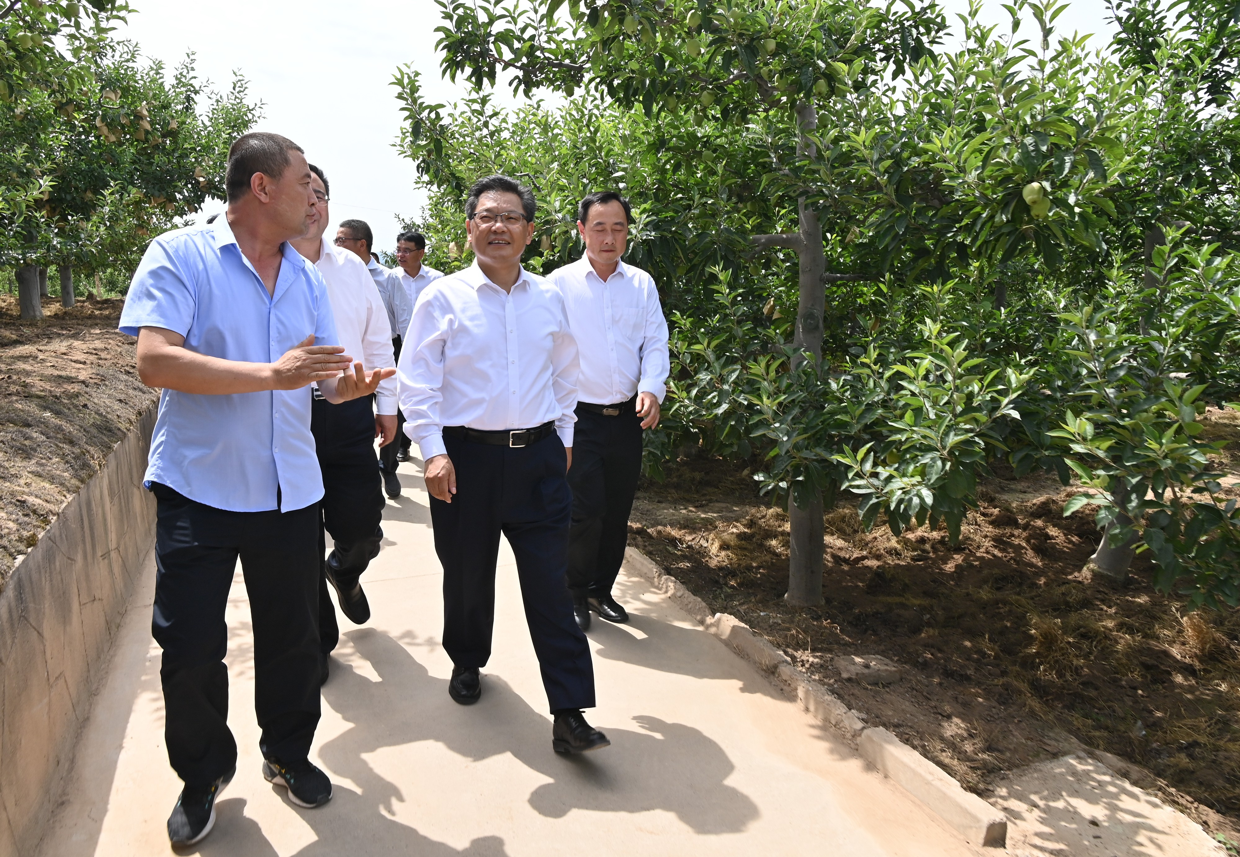 在麦积区南山万亩花牛苹果基地,任振鹤认真听取苹果产业发展情况。他指出,无论是巩固拓展脱贫攻坚成果还是全面推进乡村振兴,都需要产业发展再提速、质量再提升。要聚焦规模化特色主导产业,加大政策扶持,补齐要素短板,加快建设标准化生产基地、集约化加工链条、网络化服务体系、品牌化营销渠道,抓好品质、擦亮品牌、提升品位,促进产业形态更高级、优势更明显、特色更突出、与农民联结更紧密,让群众更多分享产业增值收益。