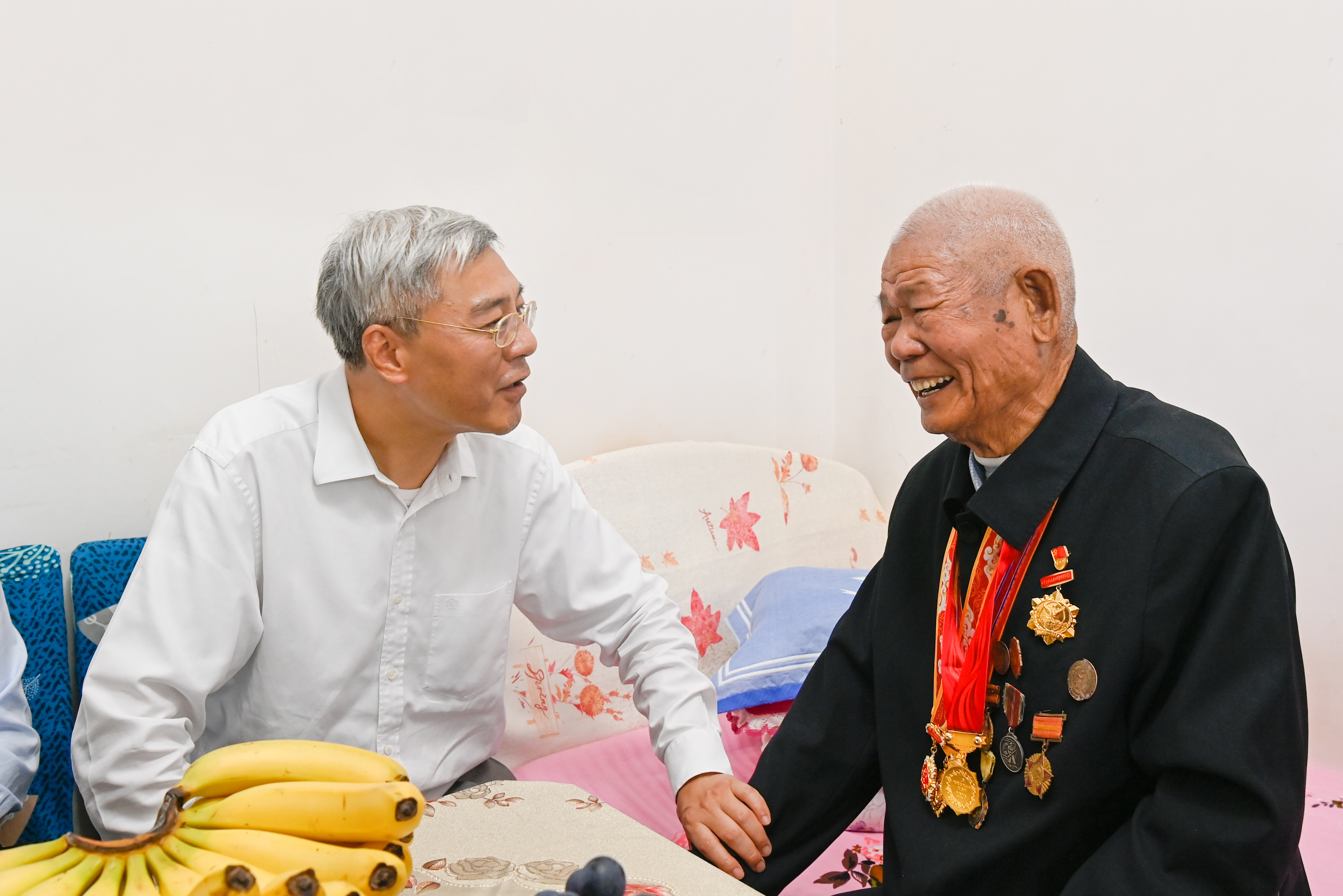 今年91岁的刘彦琪老人是1949年入党的老党员,先后参加过淮海战役、渡江战役、抗美援朝战争,荣获解放勋章和抗美援朝勋章。在聆听了老人参加革命的经历后,尹弘说,革命前辈抛头颅、洒热血,为新中国的诞生建立了不朽功勋。在革命、建设、改革各个历史时期,您始终在党爱党、在党为党,把一生都献给了党。尹弘强调,老党员、老干部是党和国家的宝贵财富,我们要铭记老同志的历史功绩,传承弘扬革命精神,激励广大党员干部立足本职、建功立业。