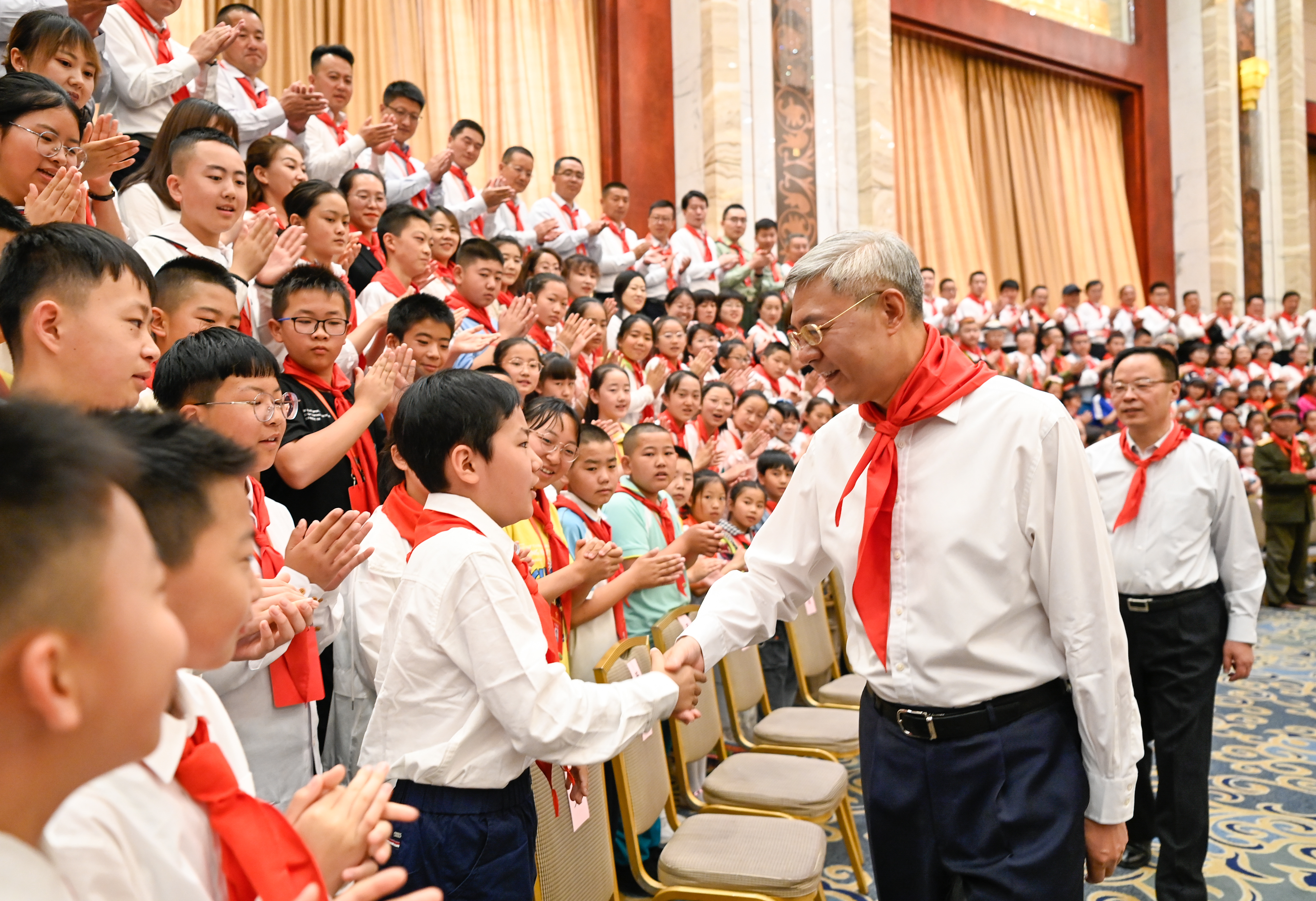 省委副书记孙伟参加会见并在大会上讲话。他强调,希望广大少年儿童从小听党话、跟党走,坚定社会主义和共产主义信念;从小学先锋、长大做先锋,养成良好品行;从小好好学习、勤于实践,练就真才实学。少先队辅导员要当好少年儿童人生追求的引领者、实践体验的组织者、健康成长的服务者、合法权益的保护者。各级共青团组织、教育部门和中小学校要把相关工作抓实抓细,让少年儿童健康成长。