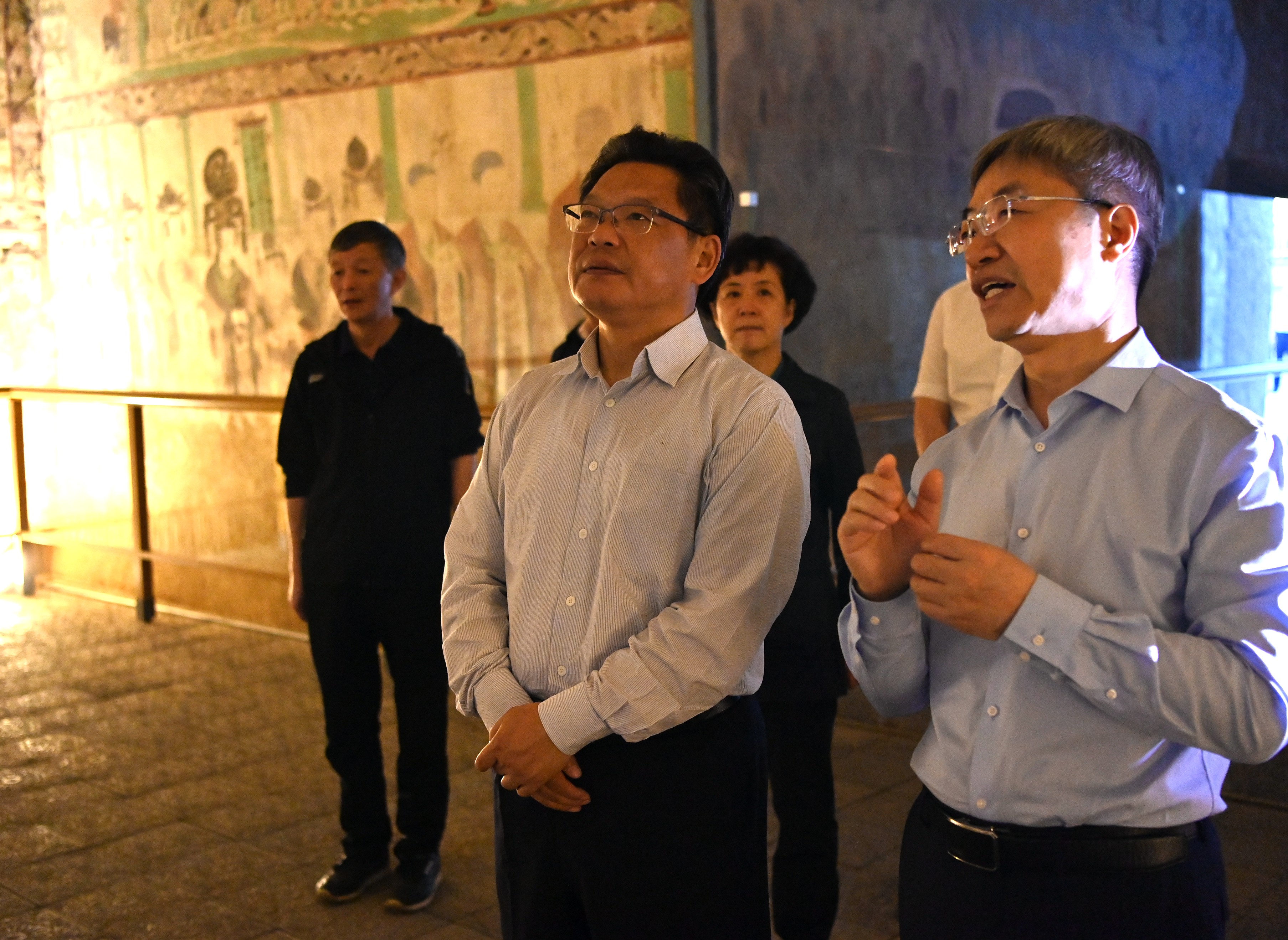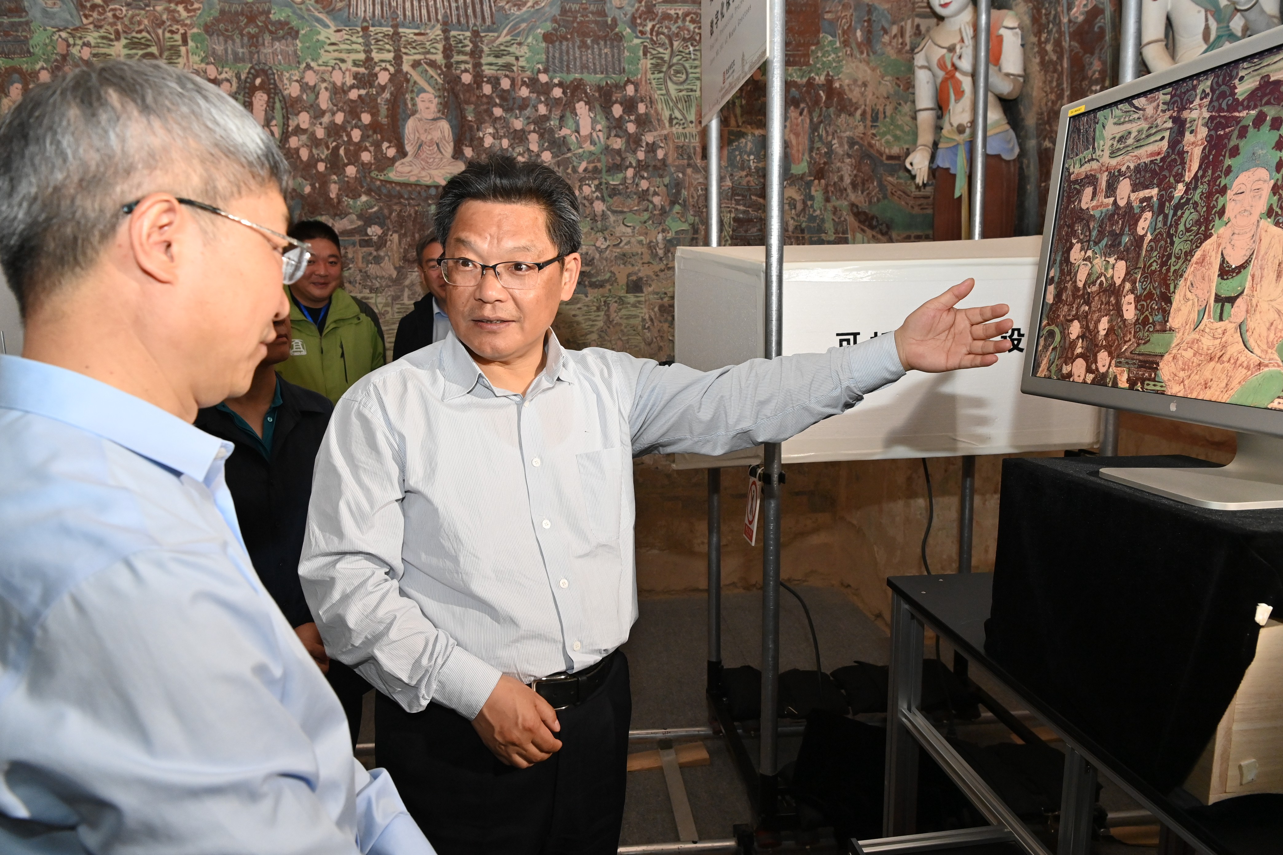 省委副书记、省长任振鹤5月31日在敦煌研究院调研文物保护工作并主持召开专题会议,重温习近平总书记在敦煌研究院座谈时的重要讲话精神,安排部署深入贯彻落实工作。他强调,要深刻领悟习近平总书记对敦煌文化保护和利用的重要指示精神,立足敦煌独一无二的文化价值、文化资源、文化魅力,传承莫高精神,统筹保护开发,对标对表、自我加压,不断完善基础设施,不断深化保护研究,不断加强交流合作,坚定做好继承者、创新者、传播者,努力推动习近平总书记重要讲话精神全方位落地、创造性转化。