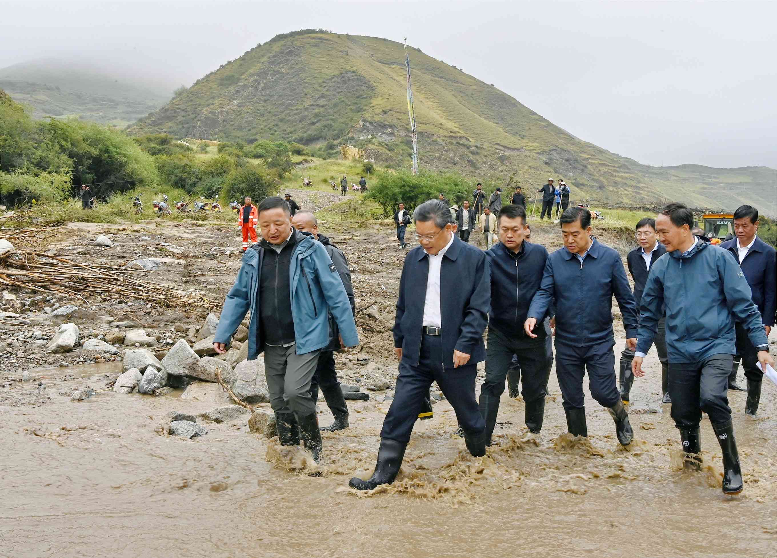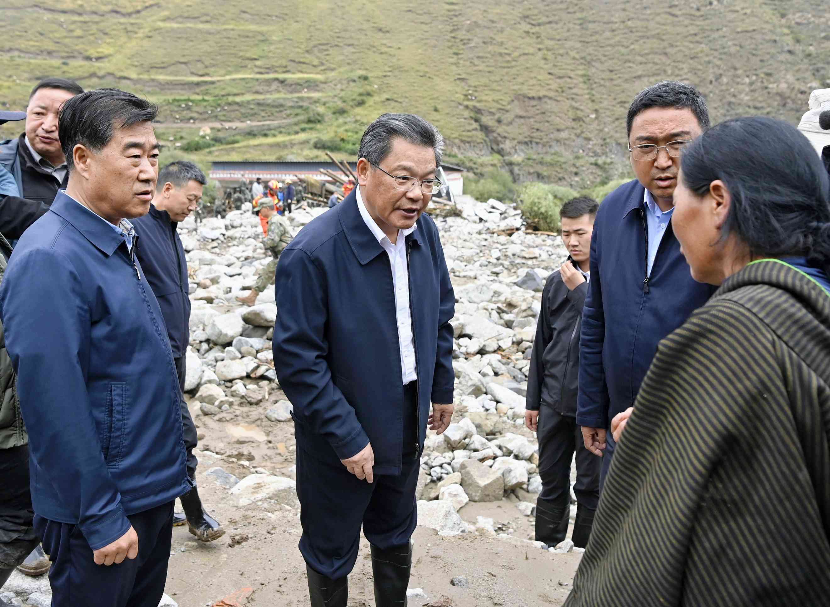 在甘南州夏河县麻当镇果宁村,任振鹤走进受灾最严重的加吉自然村灾害核心区,与当地群众、乡村干部深入交流,与搜救官兵和抢险救灾指挥部人员一道实地察看,详细了解灾害发生成因、受灾受损状况、搜索搜救进展、群众安置保障等情况,并就落实好省委书记胡昌升同志有关要求进行了细化部署。他强调,要把妥善安置受灾群众作为当务之急,做好服务保障、确保生活有序,抓紧调配各类物资,及时为群众提供床铺、食物、热水和基本生活用品,要把工作做细一些,把情况想周到一些,既要在食宿、取暖、医疗等生活需求上给予“硬保障”,也要在情绪安抚、具体困难等方面强化“软疏导”,引导大家坚定信心、党群一心战胜困难。要坚持科学施救、安全施救,统一指挥、统一协调、统一调度,坚持“点”上专业处置与“面”上统筹调度有机衔接,继续探查生命迹象,逐步扩大搜救范围,争分夺秒、千方百计搜寻失联人员。同时,要密切监测雨情水情,高度警惕作业风险,防止发生次生灾害。要组织精锐力量继续推进排涝、清淤工作,做好环境消杀和卫生防疫,抓紧修复水利、交通、通信、电力等受损设施,尽快恢复正常生产生活秩序。要同步规划灾后重建,结合生态及地灾搬迁、和美乡村建设,着眼从根本上防止灾害卷土重来,科学编制方案,用好省里紧急下达的支持资金,加快各项工作进度,确保受灾群众入冬前能够回家或搬入新居,安全温暖过冬。